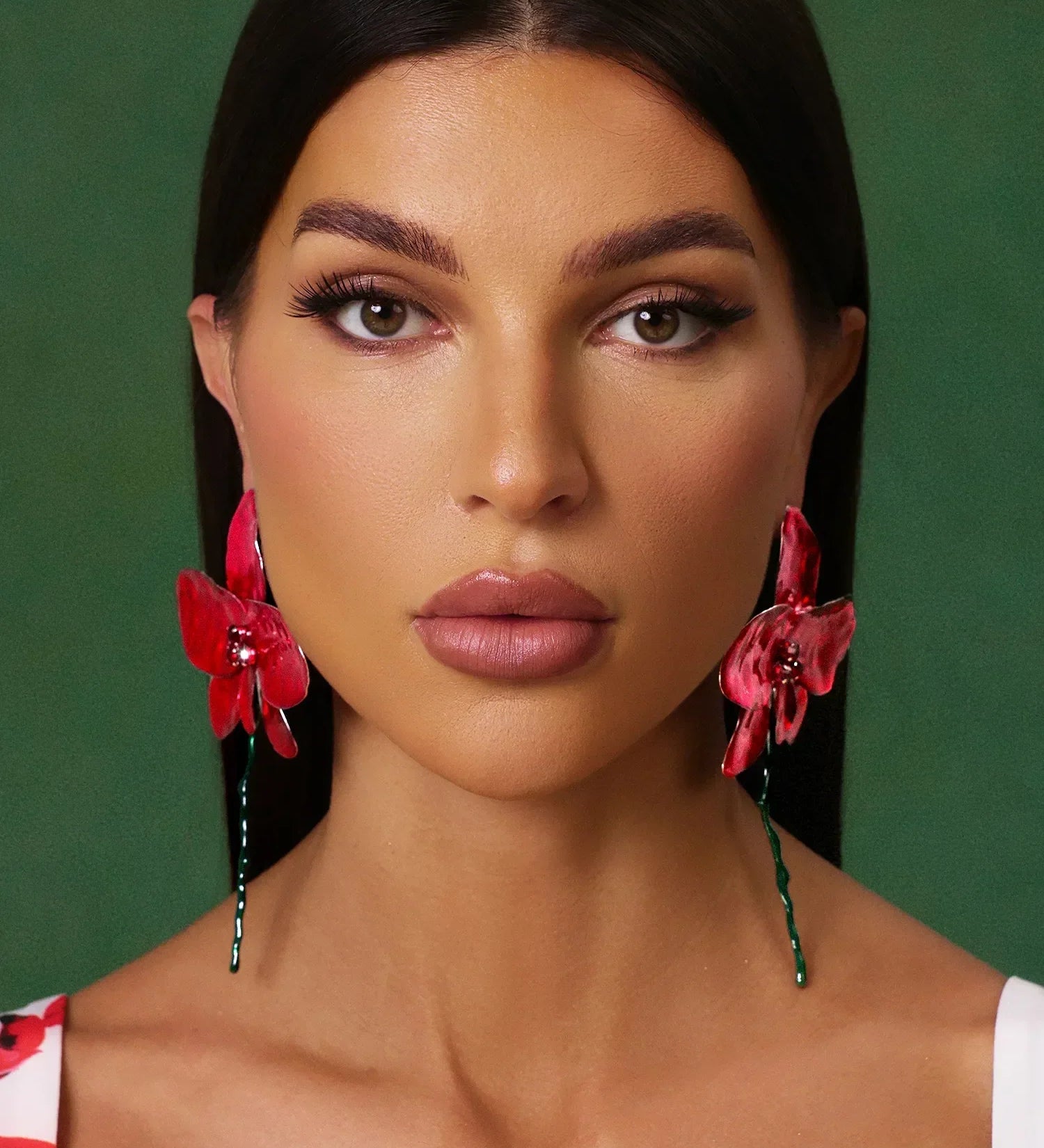 Lilia™ – røde orkidé-øreringe med kunstnerisk udtryk