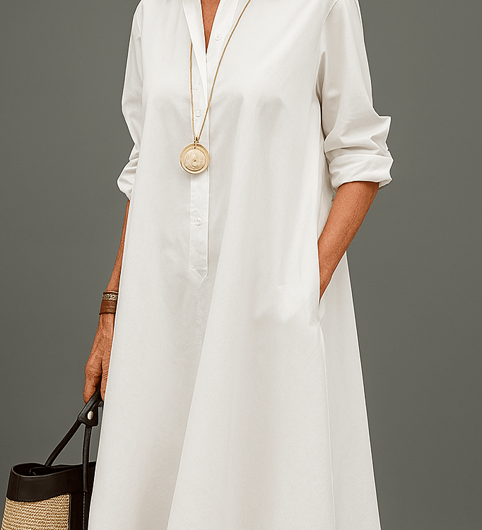 MARTINE™ – ELEGANT STRIBET SKJORTEKJOLE