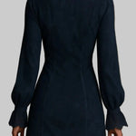 Træd ind i ubesværet elegance med vores blå ruskindsminikjole, en perfekt balance mellem vintage-romantik og moderne touch. Mærk det bløde ruskind omfavne din figur, mens delikat blonde følger hver kurve; selvtilid har aldrig følt sig så luksuriøs.