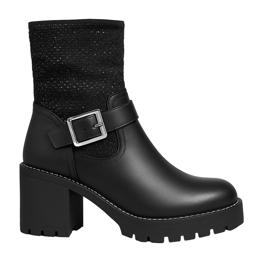 ADANA™ – SORTE ANKELSTØVLER MED SPÆNDE OG STRASS