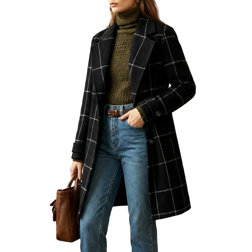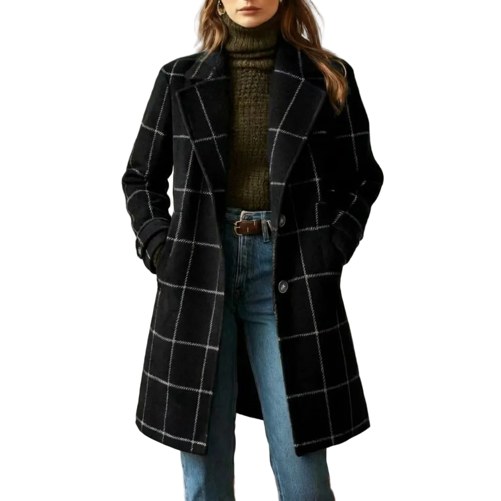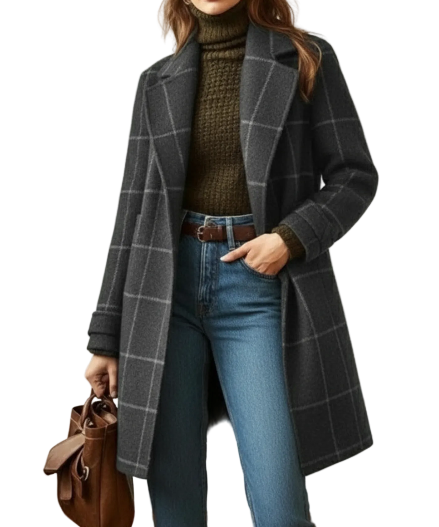 ANNE™ er en smuk ternet frakke skabt til kvinder, der ønsker et sofistikeret og tidløst look. Det raffinerede ternede mønster giver et eksklusivt præg, mens det strukturerede snit fremhæver silhouetten og sikrer komfort gennem hele dagen. Perfekt til både arbejde, byture og kølige dage, hvor stil og varme går hånd i hånd.