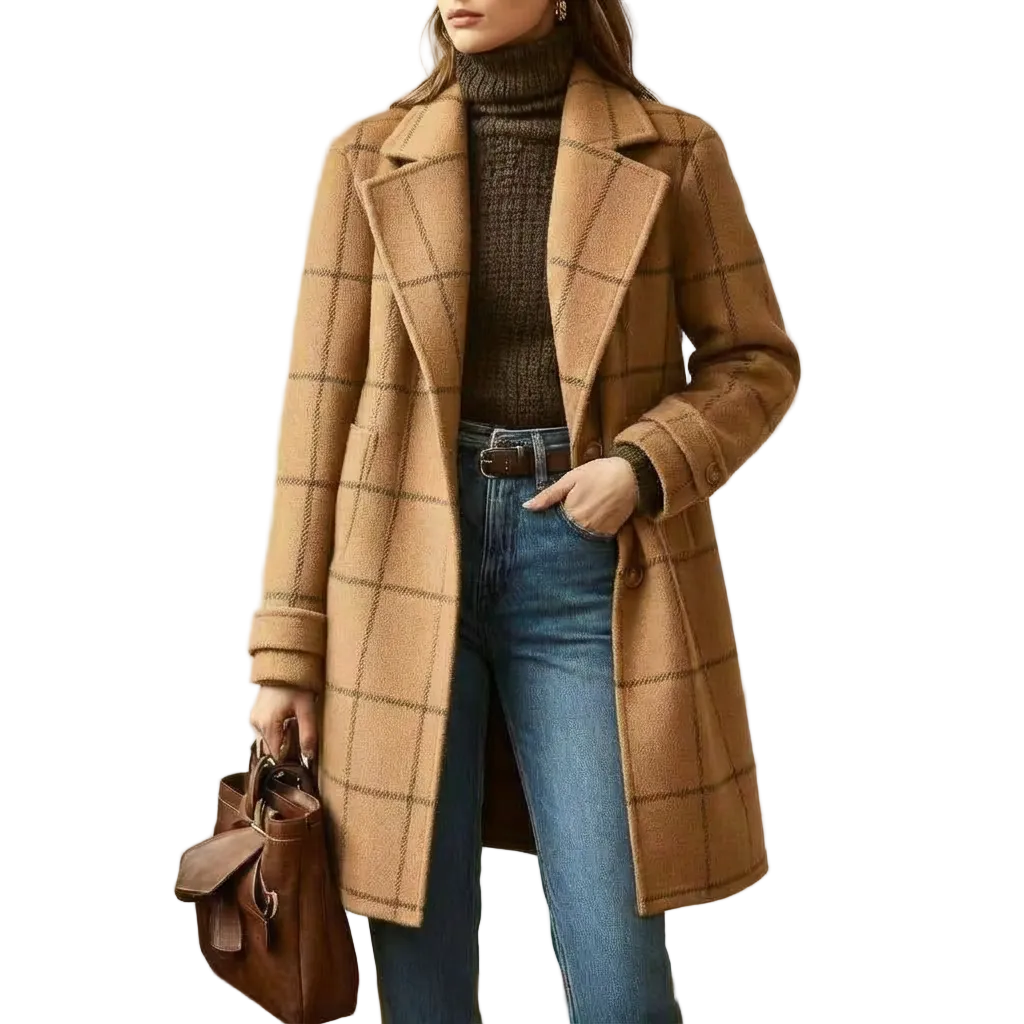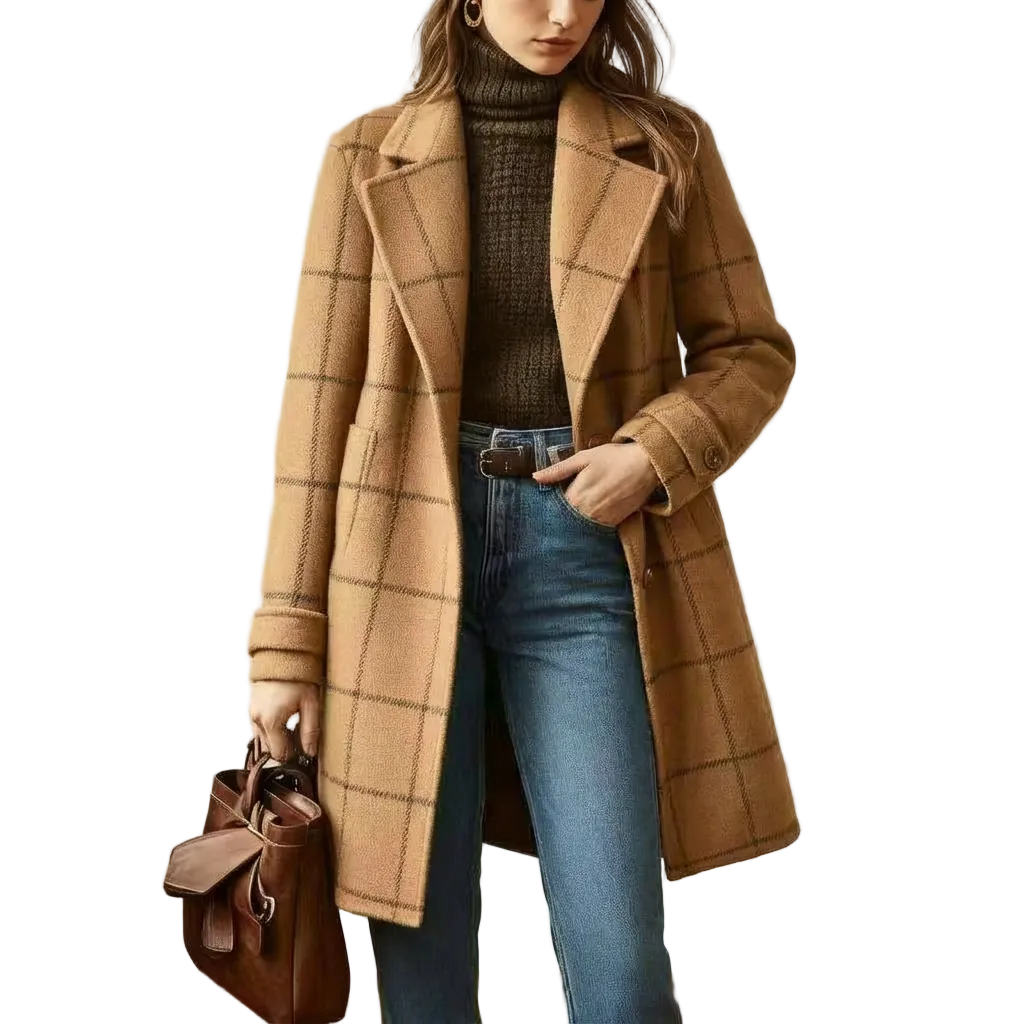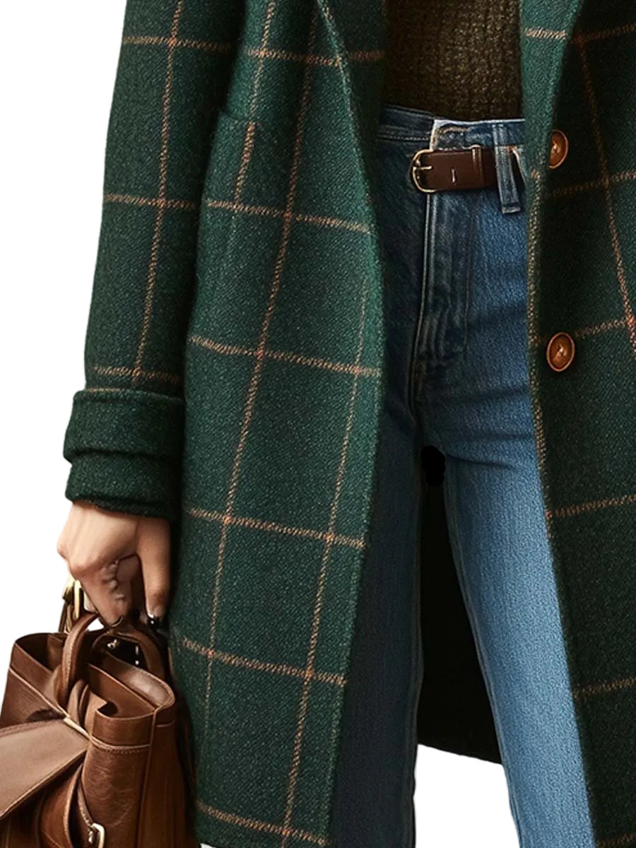 ANNE™ er en smuk ternet frakke skabt til kvinder, der ønsker et sofistikeret og tidløst look. Det raffinerede ternede mønster giver et eksklusivt præg, mens det strukturerede snit fremhæver silhouetten og sikrer komfort gennem hele dagen. Perfekt til både arbejde, byture og kølige dage, hvor stil og varme går hånd i hånd.