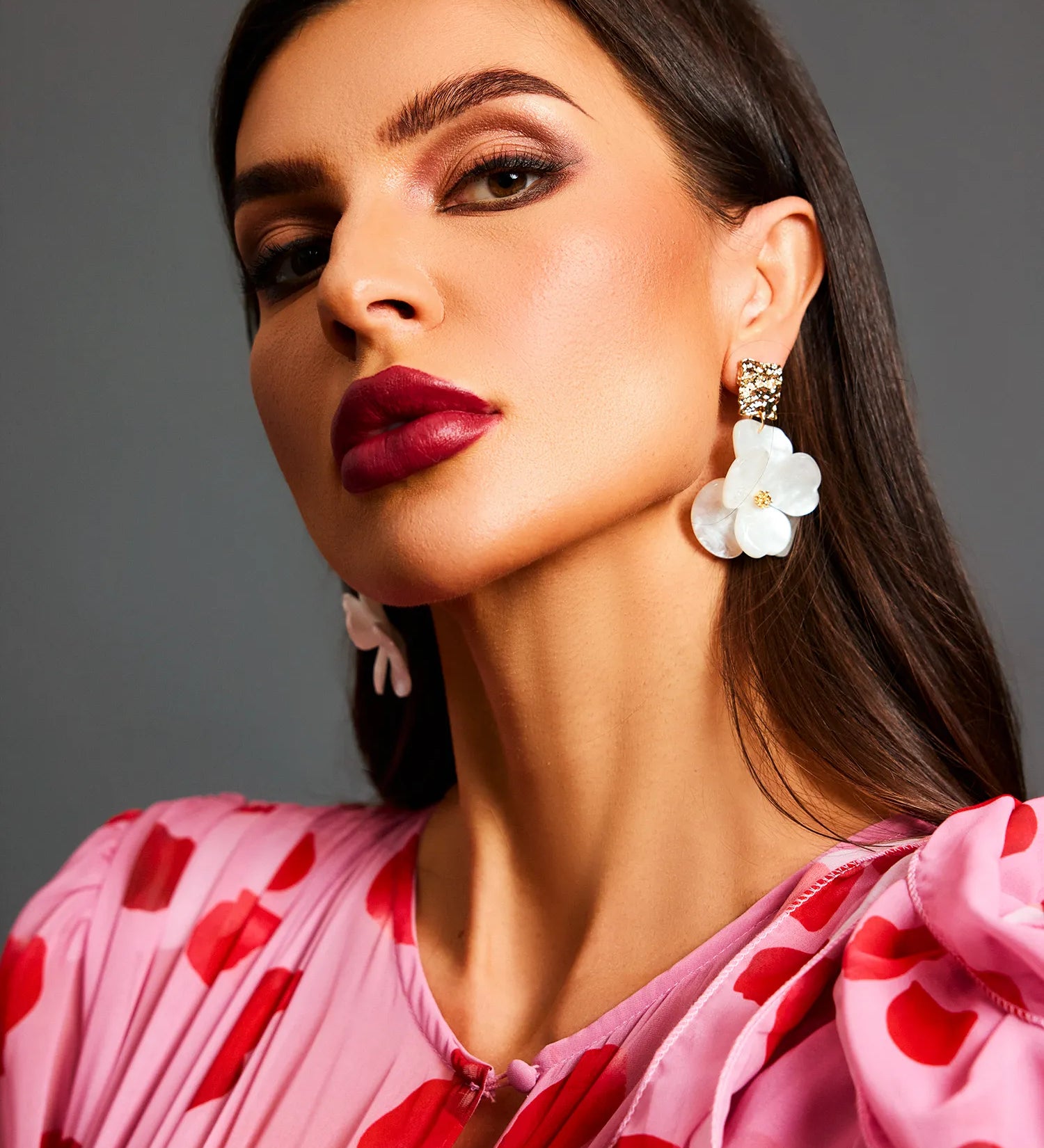 Lilia™ – røde orkidé-øreringe med kunstnerisk udtryk