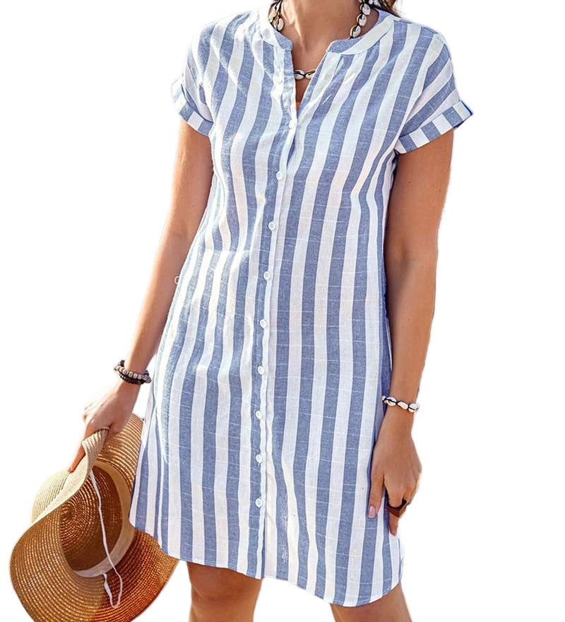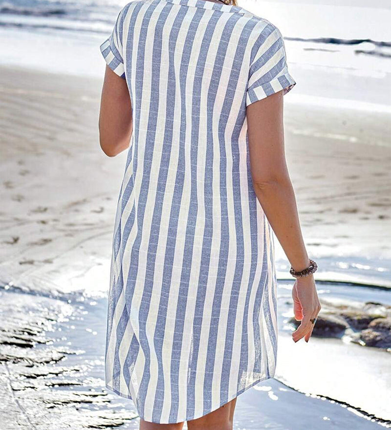 MARTINE™ – ELEGANT STRIBET SKJORTEKJOLE