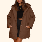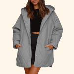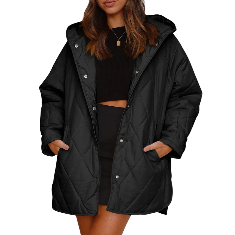 Thea™ er en moderne vatteret frakke med hætte, der kombinerer funktionalitet og elegance. Dens quiltede design giver et sofistikeret udtryk, mens det lette og varme materiale gør den perfekt til både byliv og afslappede dage ude.